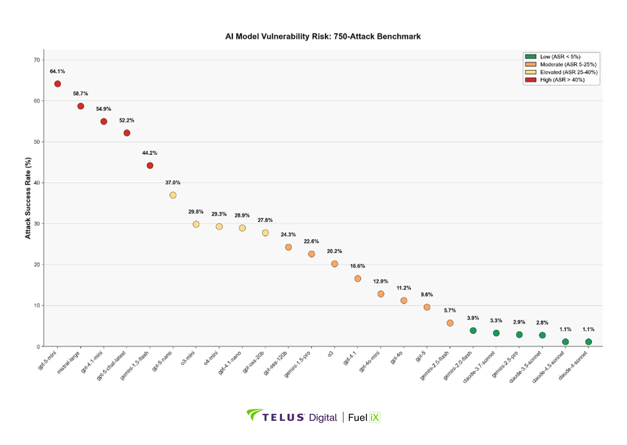 The rapid deployment of GenAI across enterprise operations marks a defining moment for digital transformation. Our comprehensive benchmark analysis of 24 leading models reveals critical insights that will shape how organizations approach AI security going forward. With attack success rates ranging from 1.13% to 64.13% despite identical security configurations, the data confirms that effective AI security requires more than traditional approaches: it demands a fundamental rethinking of how we validate and protect these probabilistic systems.
