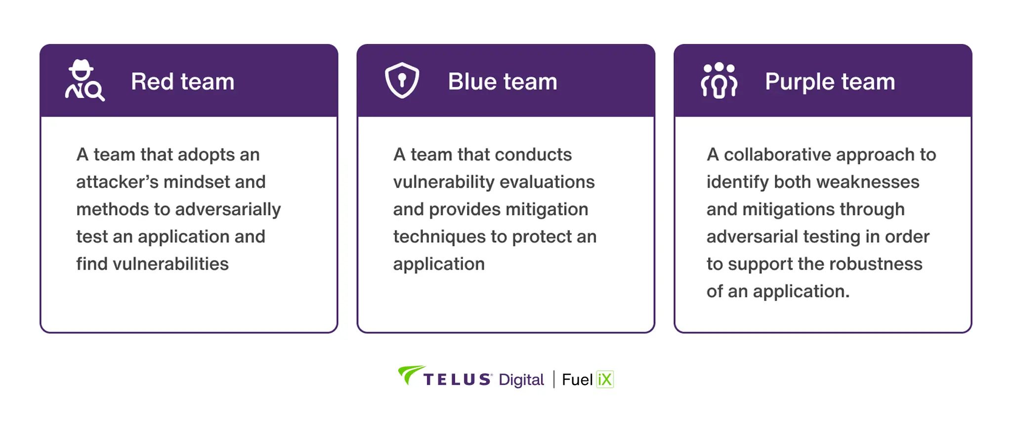 Organizations deploying AI systems need structured approaches to identify and address security vulnerabilities. Red Team, Blue Team and Purple Team methodologies provide complementary strategies that mirror the complexity of AI security challenges we’ve identified through our benchmark testing.